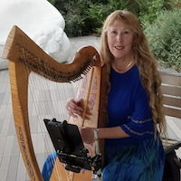 Edwards on the Celtic harp at the Scottish Fiddle Club May
